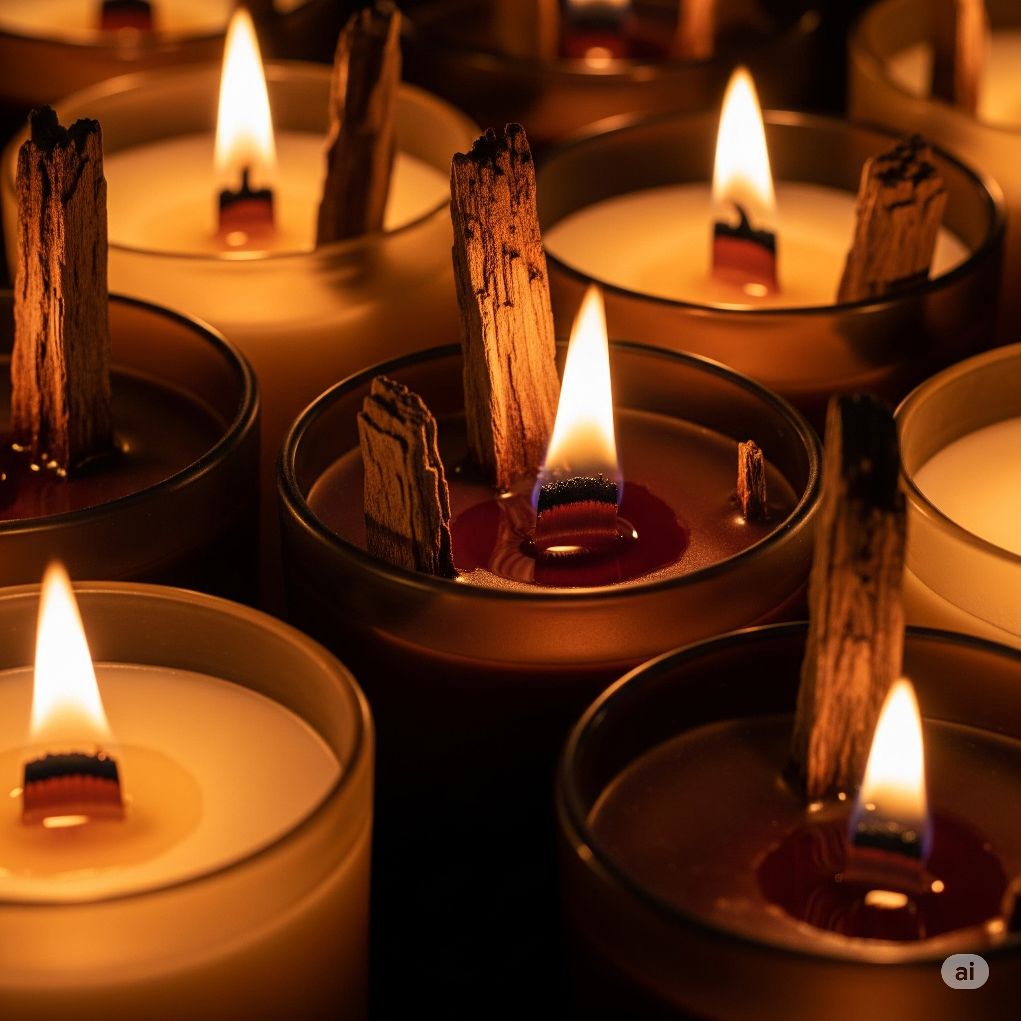 - Kerzen mit Holzdocht für ein Erlebnis wie am Lagerfeuer